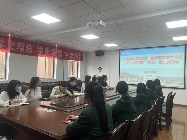 为切实做好2022年春季国家助学金的发放管理工作,激励我院学生勤奋学习,积极上进全面发展的学生,体现国家和学校对广大学生的关怀,根据学务处统一部署,我院于4月11日下午在W209会议室组织召开“2022年春季国家助学金发放仪式暨诚信、感恩、励志”教育会。本次会议由资助专员丁震霆老师主持,学院团委书记张文娟、全体辅导员以及助学金获得者部分代表参会。
