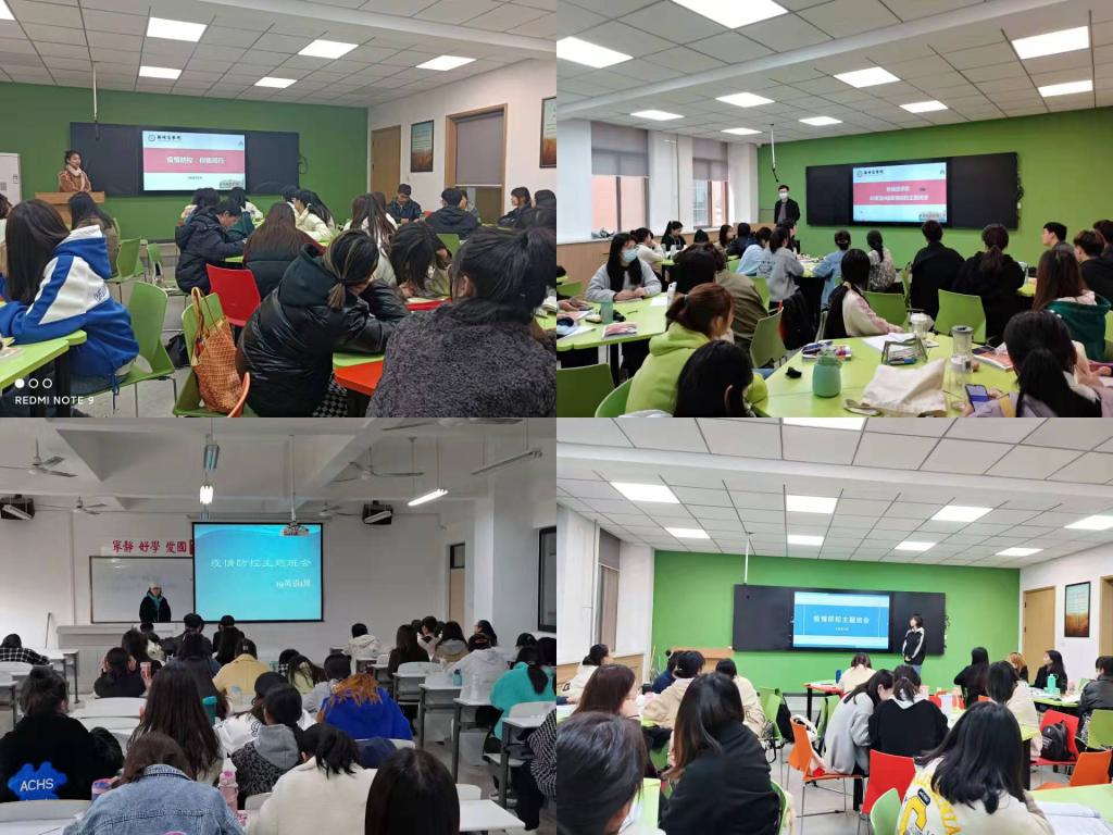 我院在学校疫情防控部署会后,第一时间在各个班级召开疫情防控主题班会,传达学校疫情防控精神,强调疫情防控和校园安全相关事宜,为疫情防控工作筑牢安全屏障。