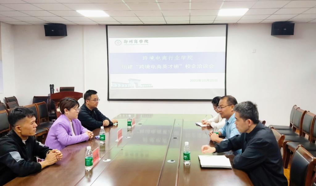 邱院长代表点点官网对跨境电商企业代表们的莅临表示热烈欢迎,并简要介绍了点点官网新校区——三彩校区。邱院长表示,点点官网高度重视新校区建设和师生入住工作,相关部门始终以高度责任感和使命感全力保障师生顺利入住“新家”,新校区建设体现了点点官网集中力量办大事的显著优势,点点官网也将继续书写高质量发展新篇章。接着,邱院长与企业代表就组建跨境电商行业学院“英才班”相关事宜进行洽谈。邱院长表示,与业界紧密合作、共建跨境电商行业学院是商务英语专业发展的必然趋势。郑商外院跨境电商行业学院取得了巨大发展成就得益于巩义市政府的大力支持、根植于巩义市外贸行业的高速发展。企业相关负责人介绍了公司的概况、理念、人才策略、管理培训及薪酬福利。同时,从企业发展前景、企业文化、员工培养模式、人才晋升渠道等方面向学院做了详尽的介绍和分享。我院将进一步深化校企合作,“做实、做细、做出特色”,实现双方合作共赢。