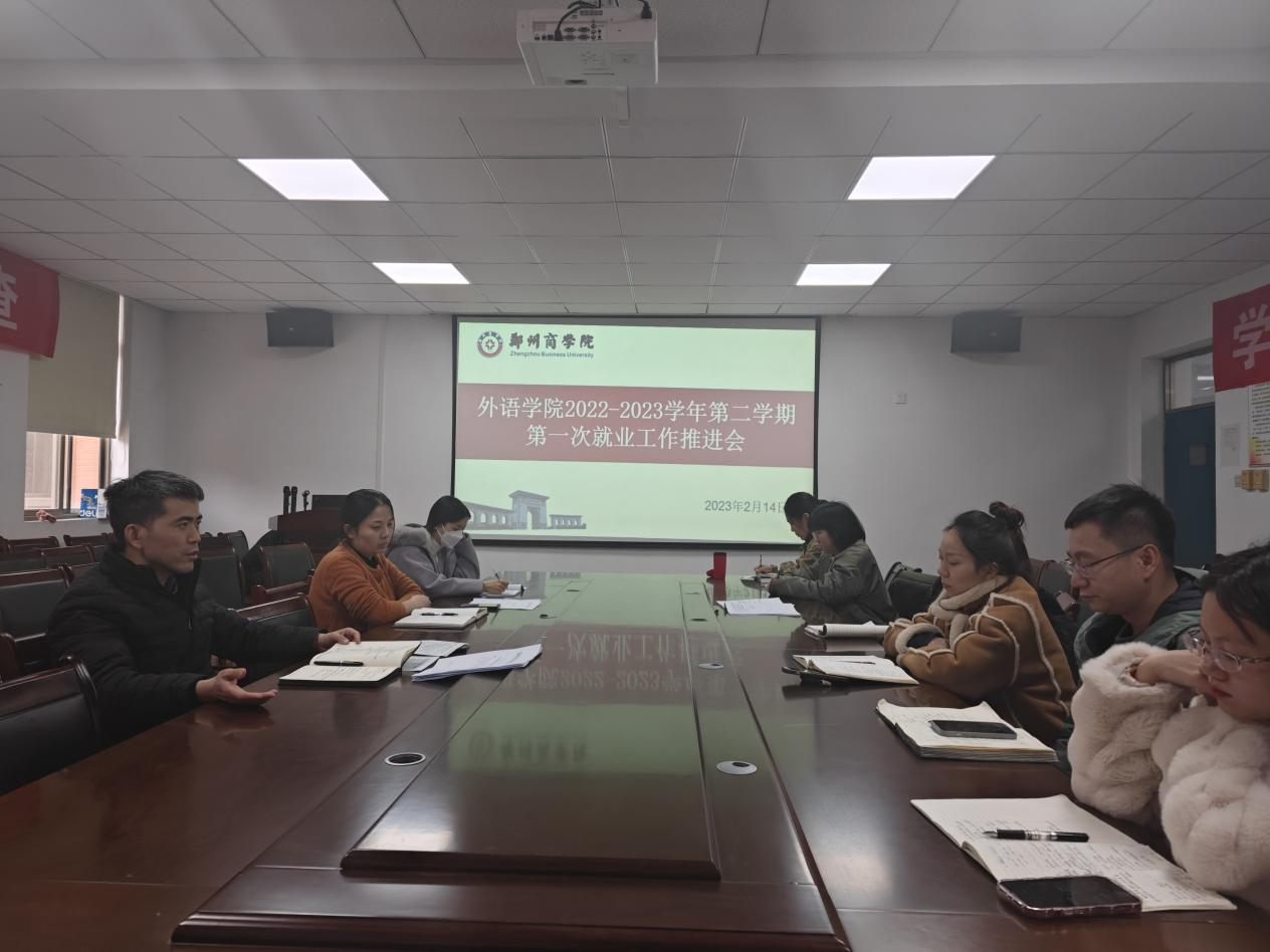 为实现毕业生更加充分更高质量就业创业,做好我院2023届高校毕业生就业创业服务工作。2月14日,外国语学院召开2023届毕业生2022-2023学年第一次就业工作推进会,学院党委书记王克志、团委书记张文娟及全体辅导员参加本次会议。