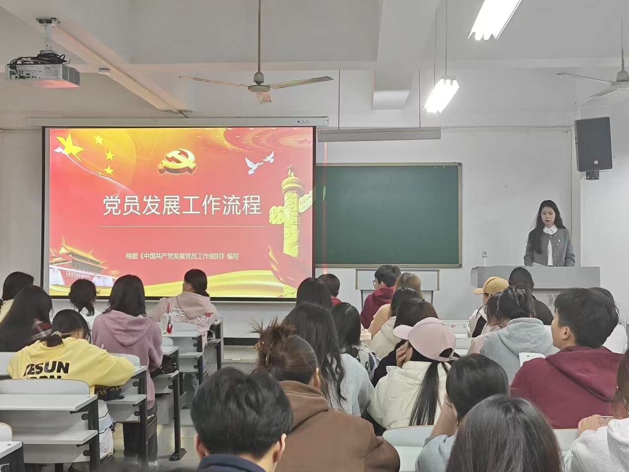 为了进一步加强我院入党积极分子党性修养,端正其入党动机,增强政治觉悟和思想认识,坚定理想信念,10月31日下午,我院于2号教学楼201教室开展第三十九期入党积极分子培训班党课第五讲。