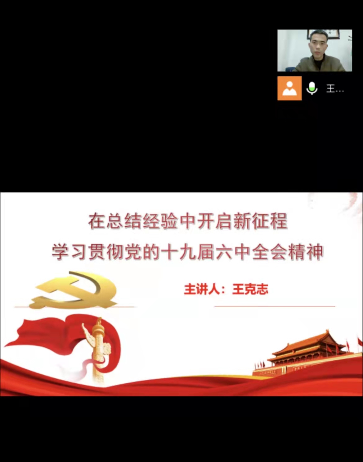 本次培训由外语学院党委书记王克志主讲,培训题目为《在总结经验中开启新征程 学习贯彻党的十九届六中全会精神》。王书记围绕党的历史、党的十九届六中全会的四个历史时期、五大历史意义等内容进行专题辅导,帮助入党积极分子进一步学习掌握党的十九大精神和新党章要求,加深对党的历史认识,端正入党动机,切实增强党性意识、提高政治素质。
