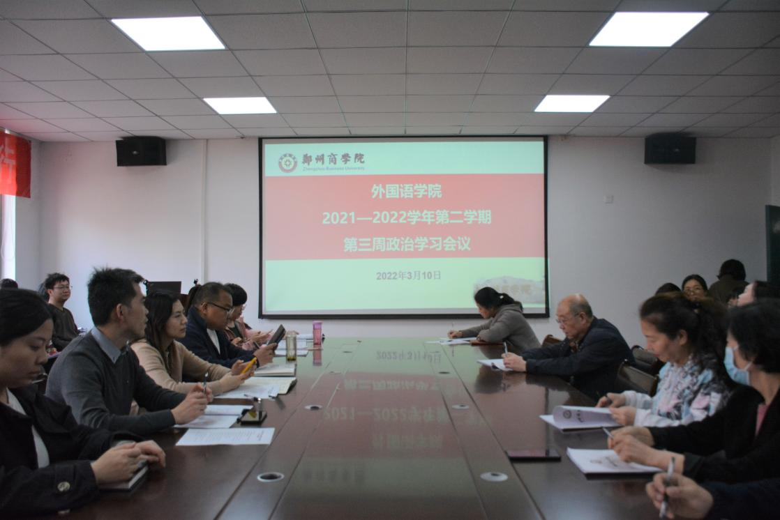 3月10日下午,外语学院组织全体无课教职工在209会议室进行本周政治学习,会议由外语学院党委书记王克志主持。会议伊始,王书记带领大家进行了李克强总理作政府工作报告和2022年政府工作报告为教育划重点的集中学习。会议过程中,老师们都纷纷表示:听了总理的政府工作报告,感觉很振奋,能够让人强烈感受到我党带领全国各族人民开启实现第二个百年奋斗目标新征程,朝着实现中华民族伟大复兴的宏伟目标继续前进的决心、信心和勇气。
