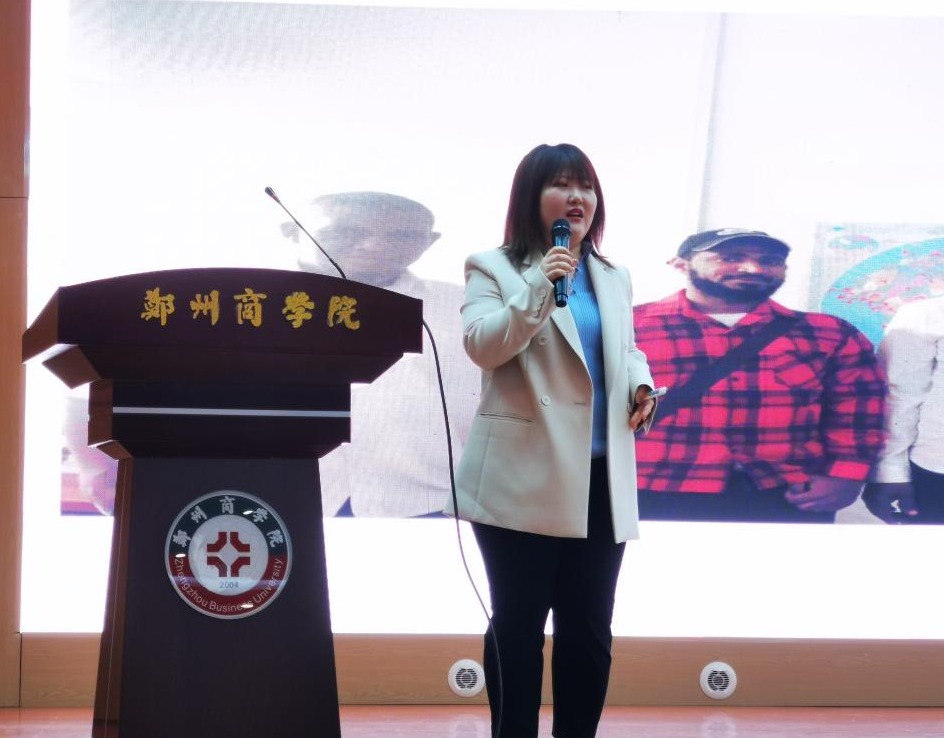 巩义宏英机械厂刘燕楠经理从自己工作内容出发,讲述国际贸易的工作内容、国际贸易技能要求和外贸职场技能。介绍完毕,刘经理与现场的同学们进行热情互动,揭秘了许多外贸行业规则,回答了同学们关心的职业发展前景、跨文化沟通等方面的问题。之后,刘经理对比巩义和北上广的优劣势,鼓励大家服务地方经济,实现自我价值。