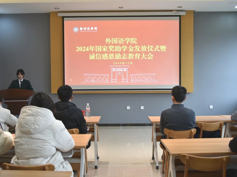 为解决学生实际困难,激励优秀学子向上向前发展,12月9日上午,我院于图书馆五楼多功能厅召开2024年国家奖助学金发放仪式暨诚信感恩励志教育大会。学院党委书记王克志、团委书记王子浩,全体辅导员及各年级受助学生代表出席本次活动。