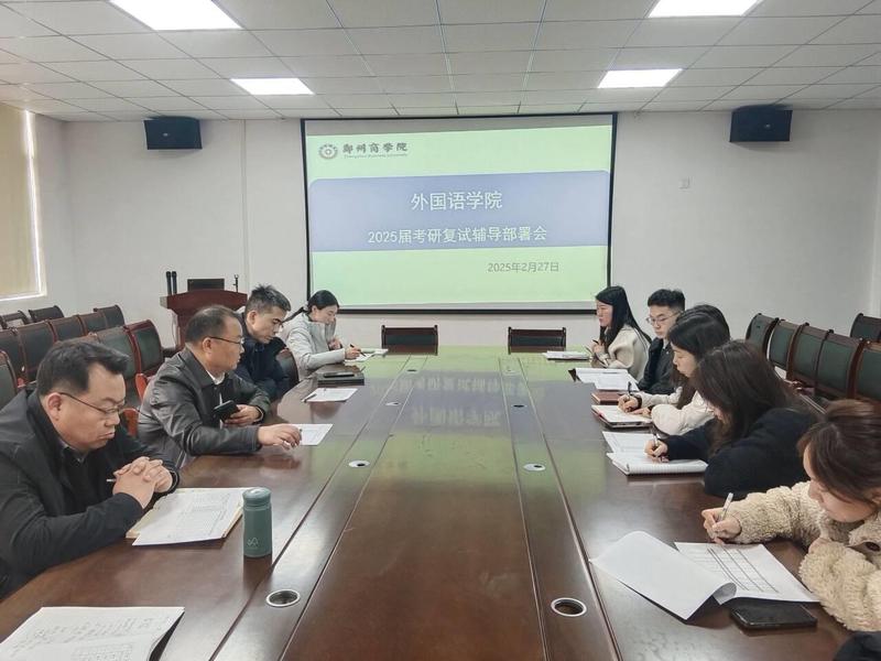 赵院长针对接下来的考研工作给出了具体的建议,他指出要做好过线考生的短板分析,开展针对性辅导。结合往届的经验,做好专业课辅导、心理疏导、面试着装礼仪指导、模拟面试等工作,并根据需要开展一系列的复试辅导课程、讲座等。各专业要通过多种渠道帮助学生了解复试政策、考试内容等,在深入分析学生需求和考研形势的基础上,立足实际、科学规划,形成可行有效的辅导方案。邱院长在最后的总结讲话中指出,学校始终坚持以学生为中心,高度重视学生考研工作。他希望外语学院以更高的站位、更实的举措,凝聚全院之力,强化责任担当,精心组织、周密安排,确保25届考研复试辅导工作取得实效,助力更多学子圆梦名校。我院历来重视学生考研工作,近年来考研录取率稳步提升。外语学院各专业将根据此次会议精神,尽快制定详细的考研复试辅导方案,并组织开展一系列辅导活动,为25届考研学子保驾护航,全力以赴助力学生成功“上岸”。