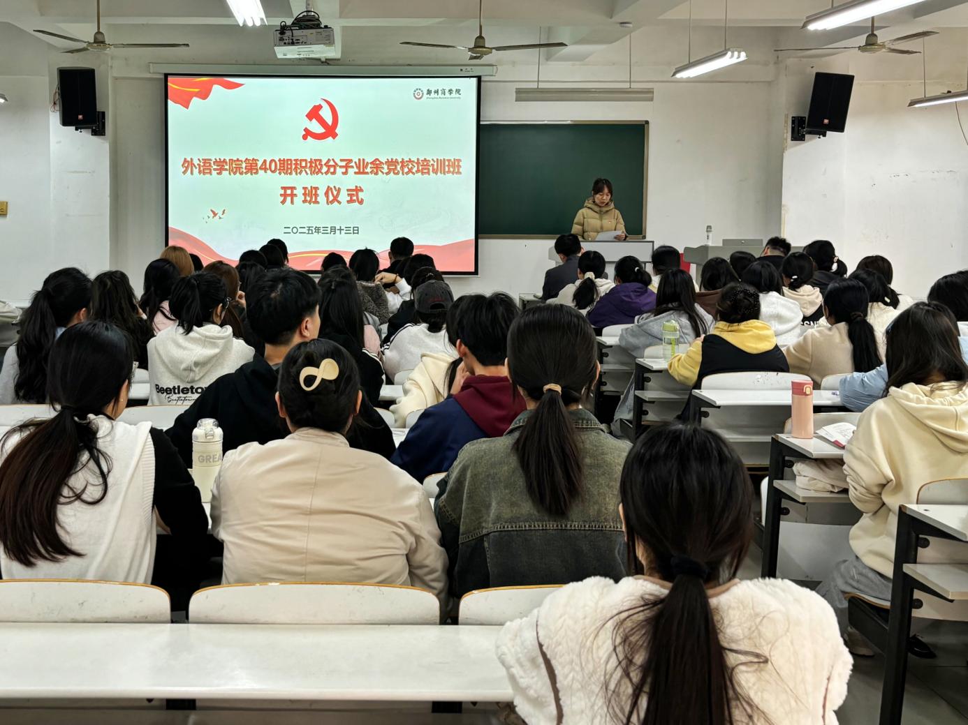 为帮助入党积极分子深入学习和理解党的理论知识,端正入党动机,3月13日下午,外国语学院于2号楼301教室举行第40期入党积极分子开班仪式暨党课第一讲。外国语学院党委书记王克志、组织委员刘宁、各学生党支部书记及第40期入党积极分子参加,学生第四党支部书记袁媛老师主持会议。