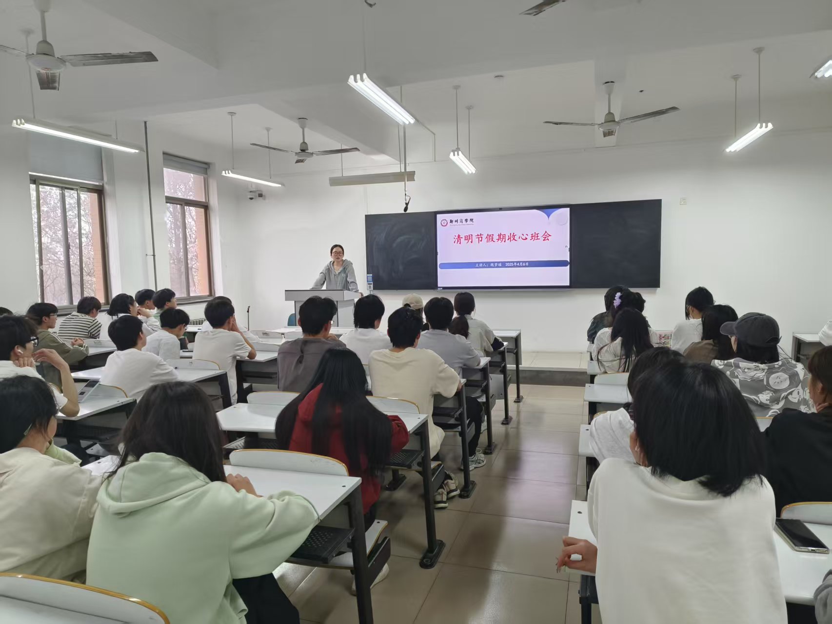 在班会上,辅导员首先向同学们传达了学院关于清明假期后的学习安排和注意事项,提醒大家要按时上课,注意课堂纪律,认真听讲,积极完成作业。同时,辅导员还给同学们强调注意校园礼仪,学生见到老师主动问好,着装得体,不穿拖鞋进教学楼,餐厅就餐要排队等事宜。最后,辅导员强调了班级纪律和团队精神的重要性,希望同学们能够相互支持、共同进步,为班级和学院的发展贡献自己的力量。