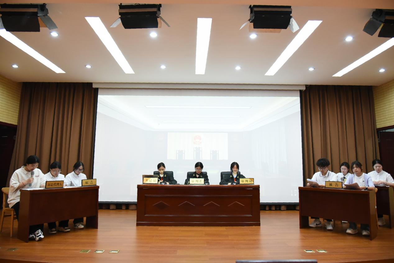 为深化法治教育实践,提升学生法律素养与思辨能力,引导学生知法、懂法、守法、用法。5月7日晚上,我院在图书馆五楼报告厅成功举办了一场精彩纷呈的模拟法庭活动。本次活动以高度还原真实庭审流程的形式,以“校园暴力”为主题,吸引了近百名学生到场观摩,为他们带来了一场别开生面的法治教育体验。