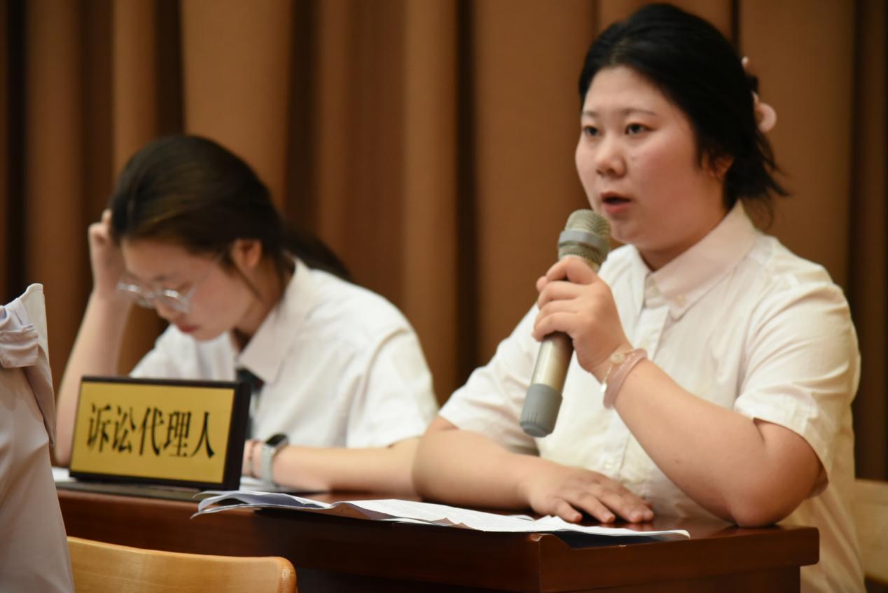 随后,到书记员宣布法庭纪律、核对当事人信息。在模拟庭审过程中,现场气氛庄严肃穆“审判长”冷静把控节奏,引导双方有序陈述观点;“公诉人”通过清晰的证据罗列与严谨的法律条文引用,阐述诉讼主张;“辩护人”则从事实认定、法律适用等角度为“被告”进行有力辩护,双方进行激烈交锋的辩论,将案件审理推向高潮。活动现场,学生们全神贯注,仿佛置身真实的法庭场景,深刻感受到法律的庄严与公正。