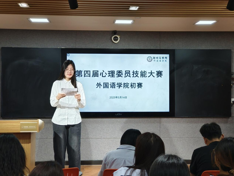 比赛伊始,主持人为心理委员详细地阐释了比赛规则,选手们全神贯注、肃然以待,准备将知识、经验与感悟倾注于比赛;在自我展示环节,各位心理委员尽显风采。他们凭借扎实的专业知识,精准剖析心理问题,为心灵困境寻得突破口;又以流利的外语能力,搭建起跨文化交流的心灵之桥。比赛现场,选手们以 PPT 汇报为舞台,尽情展现自己的风采。他们用精心制作的 PPT,搭配生动流畅的讲解,从心理健康知识科普,到班级心理工作开展情况,再到面对心理问题的解决思路,全方位进行阐述。有的选手分享了通过组织特色心理班会,引导同学们敞开心扉、释放压力的经验;有的则结合实际案例,讲述如何运用所学心理学知识,敏锐察觉同学心理变化并及时给予帮助。他们用专业的心理学术和细腻的情感表达传递温暖力量,守护每一位同学的心理健康。