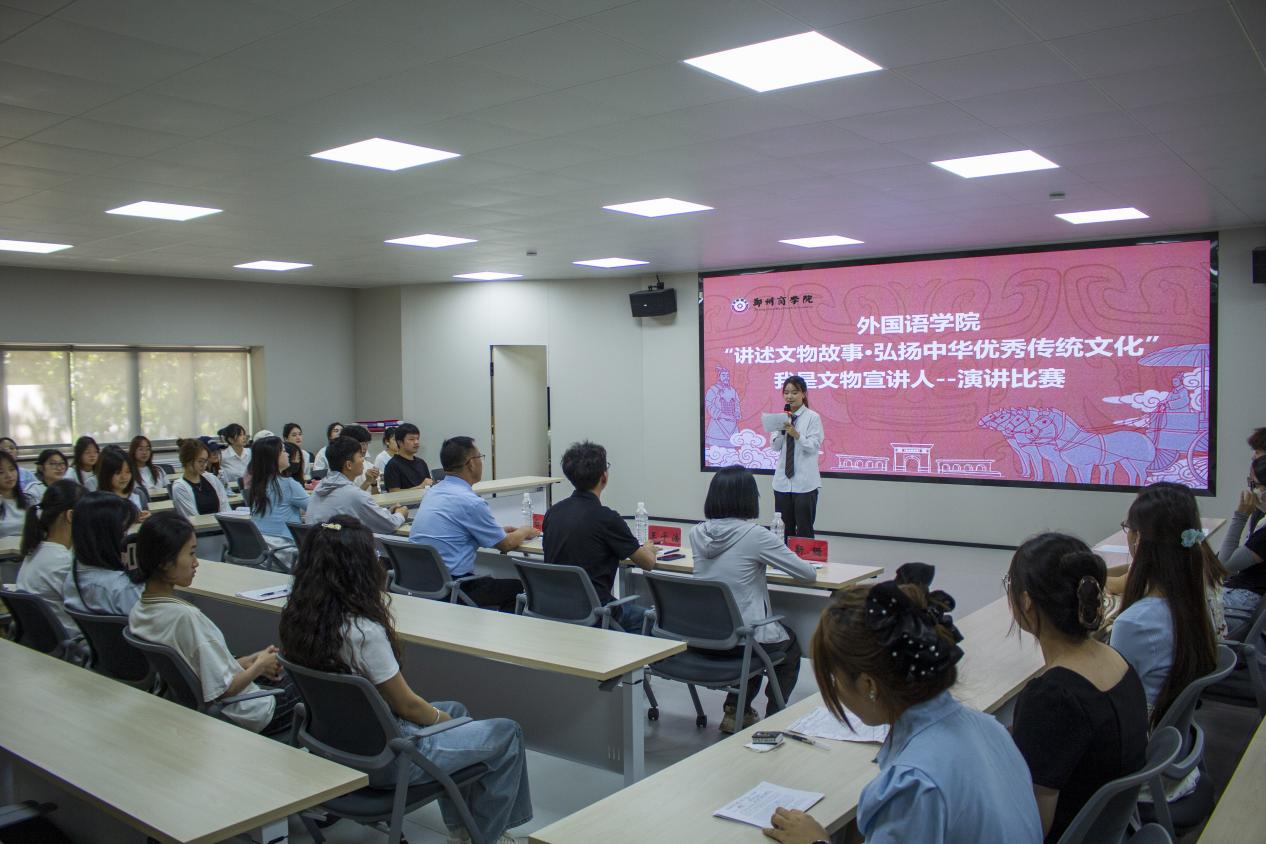 决赛现场,气氛庄重而热烈。选手们围绕精心选取的馆藏文物——从古朴厚重的青铜重器,到灵动飘逸的书画珍品;从巧夺天工的陶瓷玉器,到记录历史的简牍帛书——展开了主题鲜明、内涵丰富的演讲。他们或引经据典,深入挖掘文物背后的历史风云与艺术精髓,或从独特视角解读文物,或结合个人感悟抒发文化情怀,彰显了我院学子深厚的文化底蕴、开阔的国际视野和积极向上的精神风貌。
