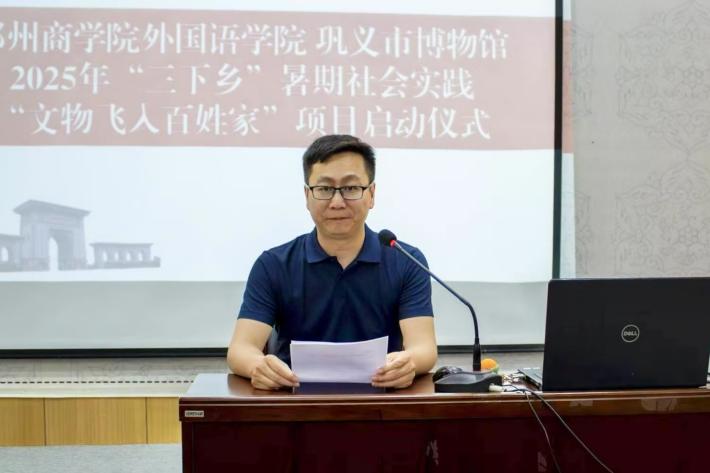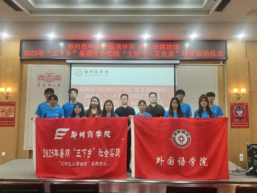 我院2025年暑期“三下乡”社会实践活动——“文物飞入百姓家”于6月27日在巩义市博物馆正式启动。参加启动仪式的有巩义市博物馆赵星浩老师、带队老师兰敬高以及我院全体实践团队成员。