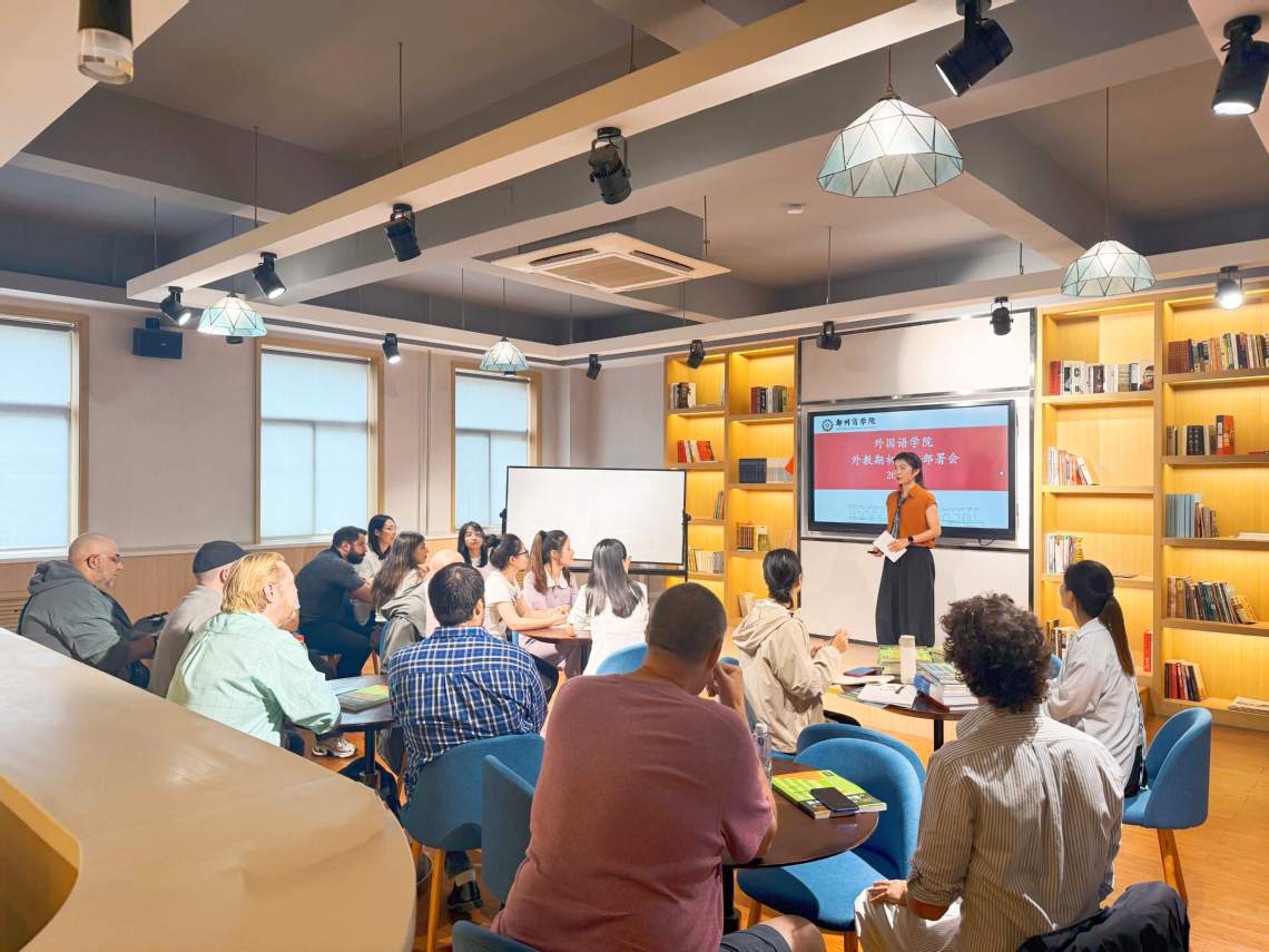 本次会议进一步明确了本学期外教教学工作的重点与管理细则,有效加强了外籍教师与学院之间的沟通协作。外语学院将继续聚焦教学质量提升与学生发展需求,持续优化外教管理机制,营造更加国际化、实践性强的学习环境,助力学生在学术与语言能力方面实现新的突破。