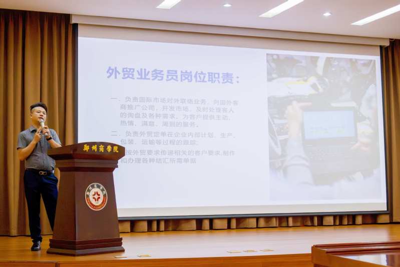 随后,李松总经理结合深圳跨境电商产业前沿动态与自身企业实战经验,从全球跨境电商发展格局、行业人才需求等方面进行了深入浅出的讲解。他分析了跨境电商市场规模及发展趋势,详细阐述了跨境电商岗位所需的六大专业技能,为同学们介绍了主流跨境电商平台以及它们之间的区别,并指出当前市场对商务英语人才在语言能力、跨文化沟通、数字营销及供应链管理等方面的综合要求,强调了“外语+商务+实践”复合型人才培养的重要性。讲座期间,李总还为同学们重点讲解了跨境电商运营与外贸业务员岗位之间的区别,并与同学们进行互动,启发学生思考。