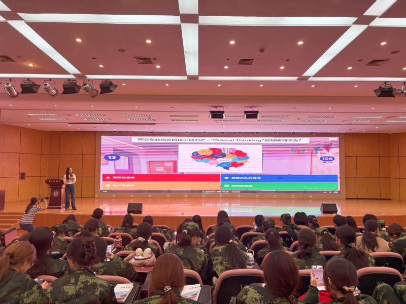 随后,赵玉洁老师组织了轻松有趣的互动游戏,有效拉近了师生距离。游戏环节后,赵老师基于前期学情调研数据,针对新生在词汇、听说、读写等方面普遍存在的困惑与需求,提出了实用建议。她重点强调“同伴学习”模式的有效性,推荐多款高效的数字化学习工具,鼓励同学们善用技术手段,全面提升语言综合应用能力及自主学习效率。