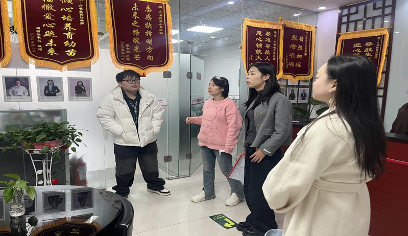 在负责人的带领,我院毕业班辅导员参观了六书教育的教学区、咨询服务中心及教研活动室,详细了解了企业的办学规模、课程体系、师资构成及核心业务布局。该机构以升学规划、志愿填报、专升本培训为核心,辐射家庭教育、出国留学咨询等多元服务,目前已形成覆盖全学段的教育服务链条,在区域教育领域积累了良好口碑。随后,双方围绕人才需求标准等议题展开深度交流。企业负责人结合六书教育的业务发展实际,全面解读了企业的人才需求体系,针对岗位需求与人才培养的衔接问题,双方展开重点研讨并达成多项共识。