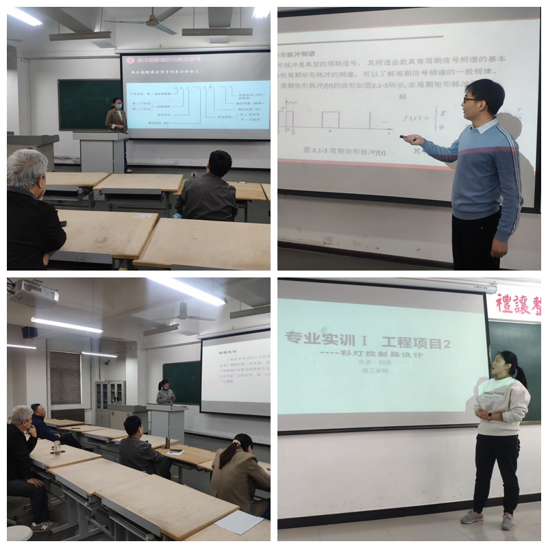 2022年4月16日下午,我院电气工程及其自动化教研室为了全面提高青年教师的课堂教学水平,全面帮助和促进青年教师能够快速地站稳讲台,在4号楼4201开展了青年教师磨课活动。活动由教研室主任张雅博老师主持,温文豪、刘迷、王淑彦及韩丽君四位青年教师担任主讲,宁永海老师、郑龙老师及张敬堂老师参与会议。