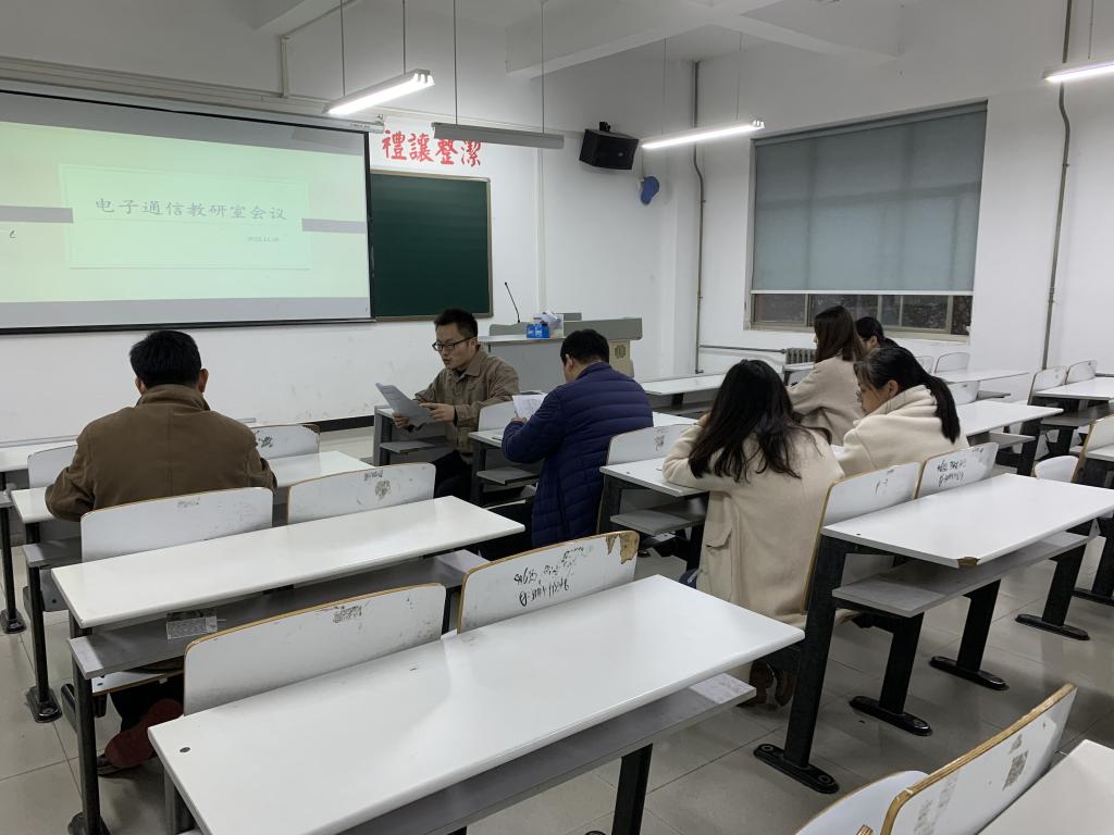 11月18日下午16点,我院电子通信教研室在四号教学楼3楼310教室召开了实验室建设论证座谈会,教研室主任杨德青出席并主持了会议,教研室成员张敬堂、任孝锋等六名教师出席了会议。