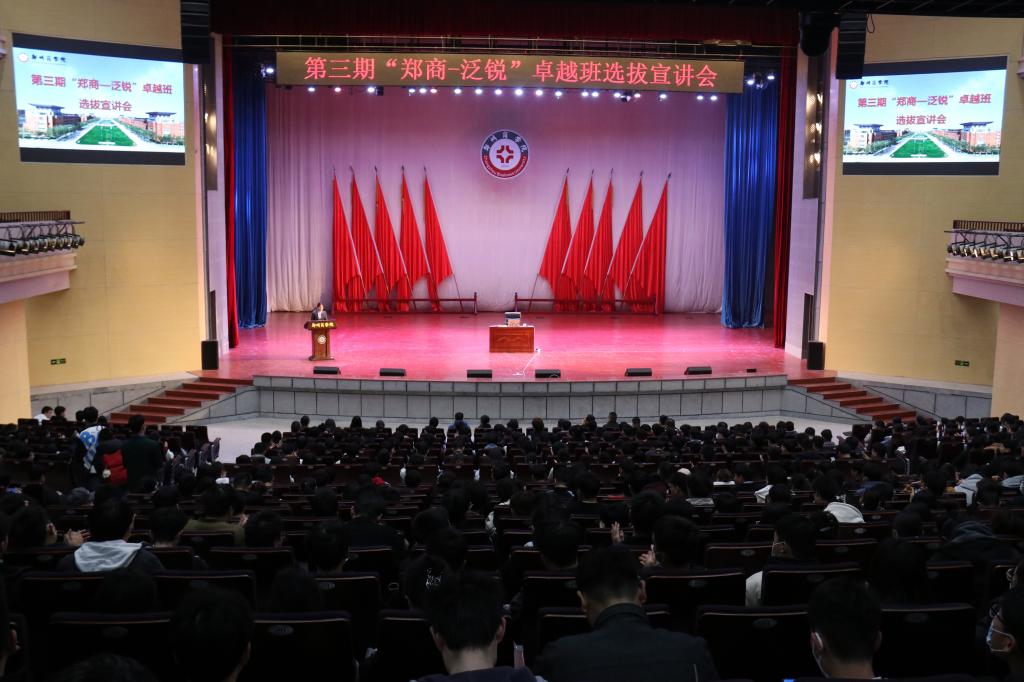 2022年,在校企双方的共同努力下,“泛锐熠辉”被河南省教育厅直接认定为河南省高校大学生实践教育基地,实践教学科孙亚颇科长为泛锐熠辉副总赵严博士授发牌匾。随后,泛锐熠辉副总赵严博士以“踔厉奋发,卓越锐商”为题在会上向同学们介绍了企业文化、发展历程、取得荣誉、科研团队、核心产品以及卓越班的培养模式与选拔计划等内容。并鼓励同学们不忘初心,努力拼搏,坚信“卓越班”一定会取得丰硕成果。