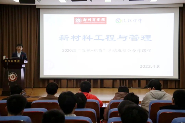 为进一步落实taptap点点——泛锐新材料产业学院建设规划,巩固校企合作成果,联合培养企业需要的应用型人才,第三届“郑商—泛锐”卓越班合作开设的《新材料工程与管理》课程,于2023年4月8日正式开课。