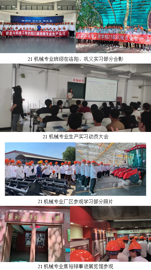 培养应用型工科专业人才是根本,基于此并依据21级机械设计制造及其自动化(以下简称21机械)专业培养方案,6月8日至14日,21级机械专业全体学生在巩义及洛阳几个工厂完成了生产实习环节。学生们很好的完成一门实践课程,取得了诸多的收获。