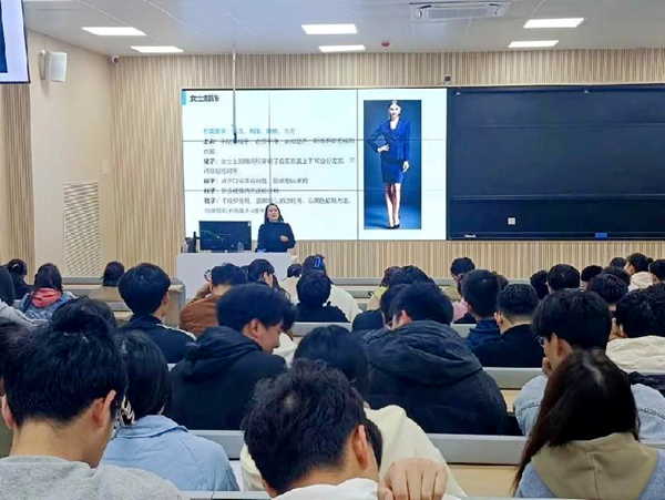 本次讲座张老师主要以“礼仪与管理”为题,从角度、思维、形象、原则入手,以服装原则及有意识的管理为实例,为同学们详细诠释了何为职场礼仪以及求职前各项礼仪准备。