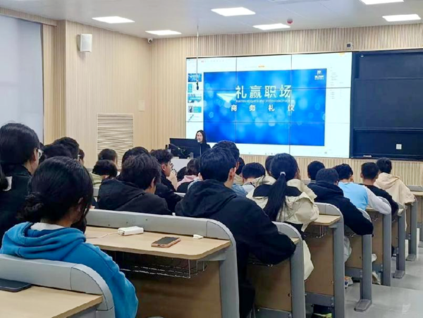 受市场大环境的影响和时代的飞速发展,当前大学生就业形式日益严峻。对于我院学生就业问题,校方和院方一直特别关注。为了帮助我院学生对于就业知识有进一步了解,更好的适应企业职场需求。11月22日,我院特邀河南量子矩阵科技有限公司张陈聪老师为我院21级学生开展职场礼仪培训讲座。