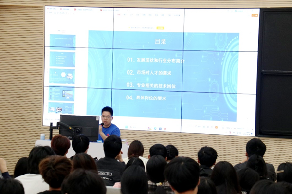 2012级计科专业校友胡亚辉就杭州中科极光科技有限公司安卓工程师的岗位及其经验进行分享,他分享的主题是:杭州互联网现状分析。胡亚辉强调同学们要增强对互联网变化的认识,加深对未来职业生涯的了解。