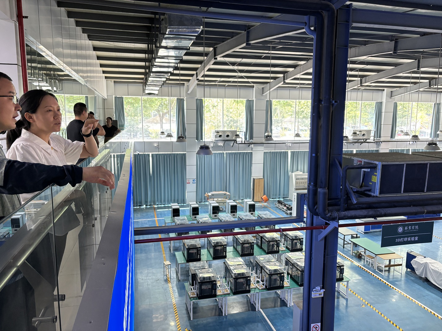 随后我们来到西京学院机械工程学院的大学生工程训练中心,该中心实验设备包括普通车床、普通铣床、数控车床等,参观并详细记录了各个区域占地面积、容纳机床数量、机床间距、布局及详细品牌型号参数。又参观了智能装备研发中心,学习了中心各实验室的布局、所包含实验设备的型号数量等,对我院后续工程实训中心的建设具有一定参考价值。