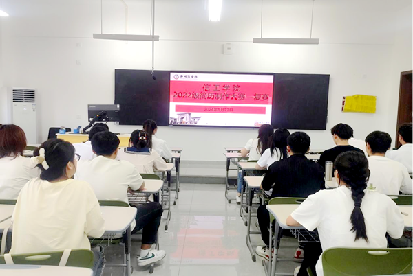 经过前期班级层层筛选,结合学生专业特点和个人简历,最终从1400多名参赛学生中挑选出20名优秀选手进入复赛环节,2024年5月22日晚上,2022级简历制作复赛在信工大楼A401教室顺利进行。