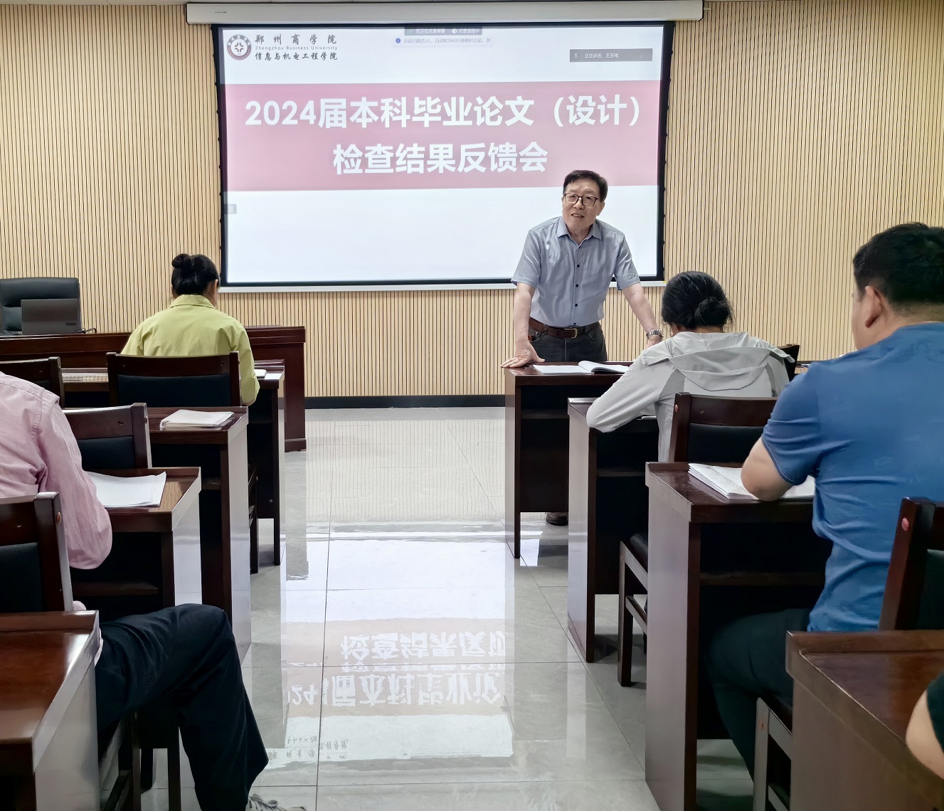 姚旭东教授在会上强调了毕业论文的重要性,指出本届毕业生的毕业论文将在未来一年内接受上级部门的三轮抽检。他强调,这不仅关乎学生的学术成果,更是学院未来发展的关键审核事项。姚教授呼吁全体教师务必高度重视,全力以赴做好相关整改工作,确保论文质量达到标准。