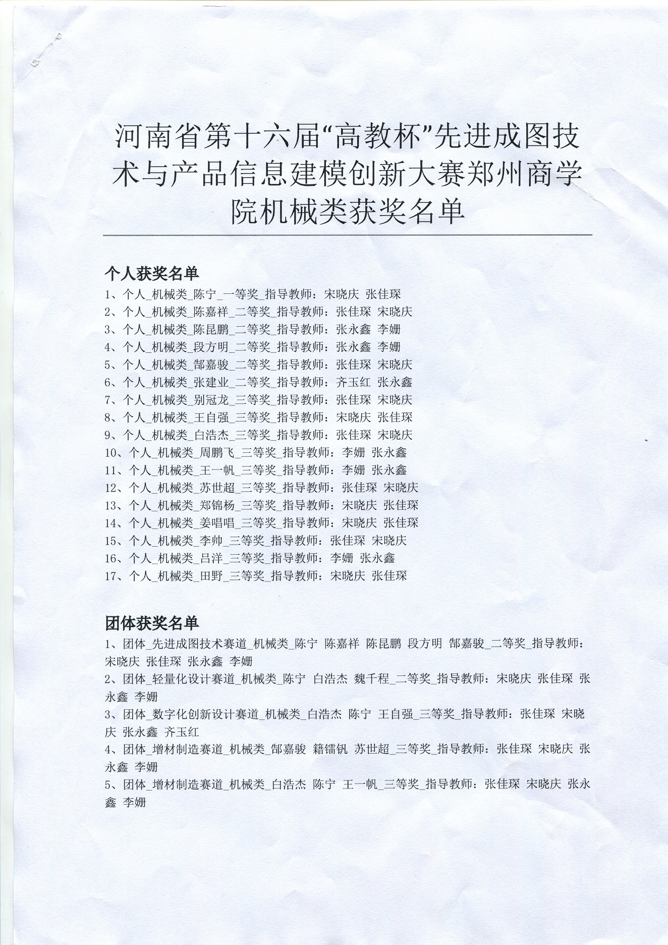 此次省赛经校级初赛选拔,信工学院共派出25名学生参与机械类比赛。经过激烈角逐,共17名同学荣获先进成图赛道个人全能奖,一等奖1名,二等奖5名,三等奖11名,其中参赛选手陈宁荣获个人全能一等奖,个人排名河南省第25。其他分赛道也有斩获,增材制造赛道团体二等奖,轻量化设计赛道团体三等奖,数字化创新赛道团体三等奖,点点官网荣获河南省机械类团体二等奖,成绩再创历史新高。