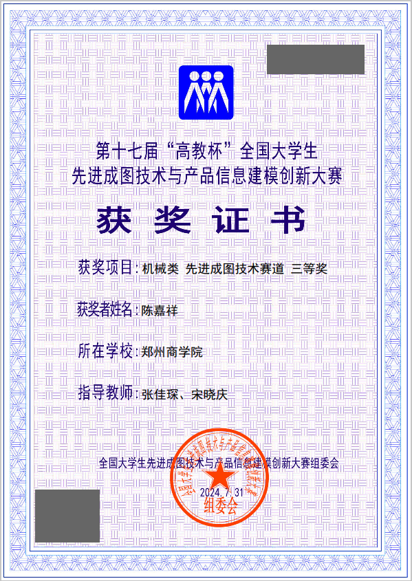 近日,第十七届“高教杯”全国大学生先进成图技术与产品信息建模创新大赛已落下帷幕,本次总决赛采用“一个主赛场+各省分赛场”的组织形式,主赛场设在贵州大学,各省分赛场分布在全国26个省、直辖市、自治区。全国895所学校的1642支队伍、16294名学生同台竞技。信工学院机械专业先进成图社团学生经过校赛、省赛等层层选拔,成功入围全国总决赛,在全国机械类先进成图技术赛道表现出色,获得国赛团体三等奖,增材制造赛道三等奖、轻量化设计赛道三等奖、并荣获个人全国二等奖1项、全国三等奖4项,充分展示了郑商学子在成图技术、信息建模能力及综合素质方面的卓越风采。