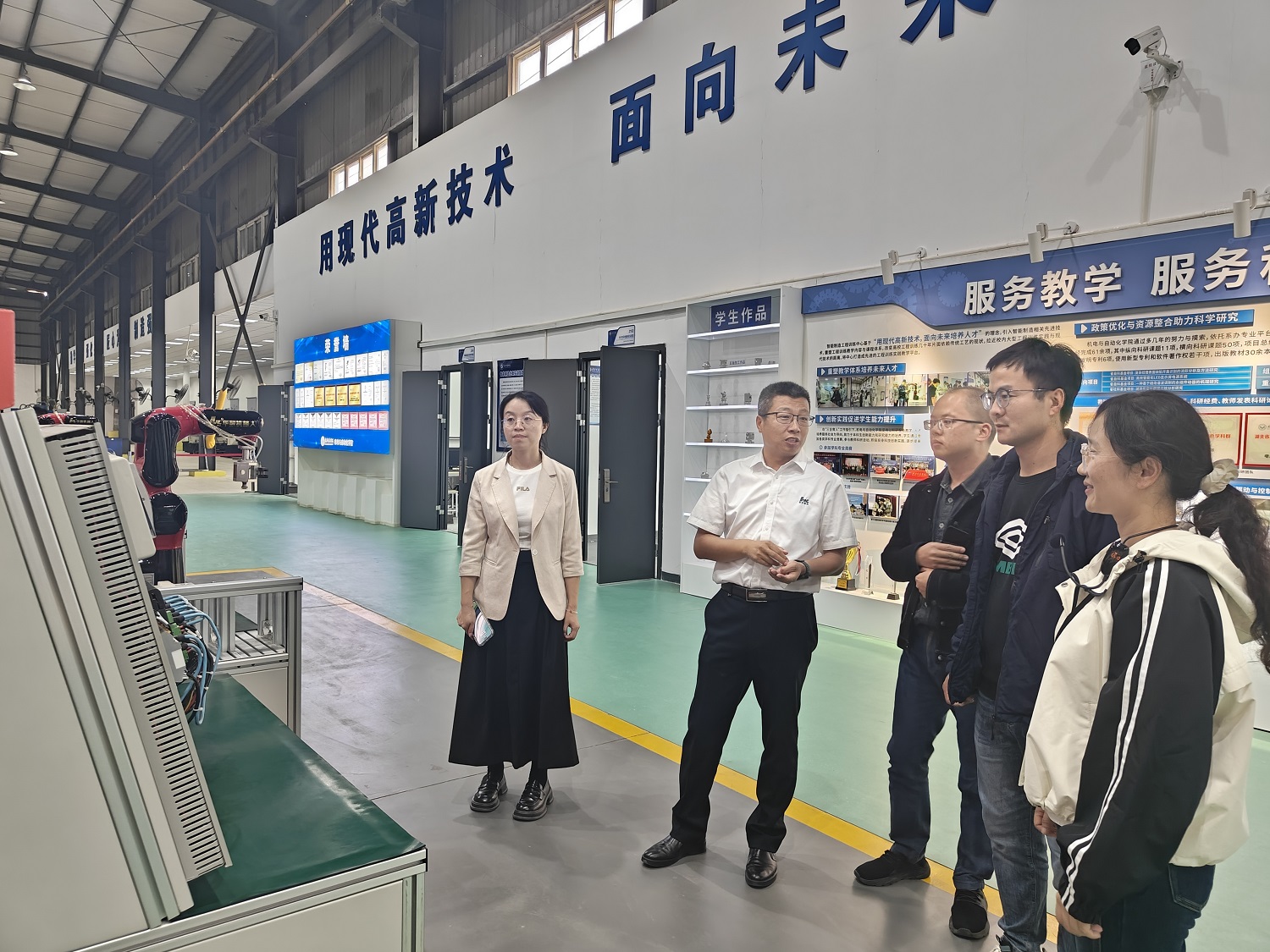 11月5日下午,对华中科技大学工程训练中心和华中数控进行了考察调研。华中科技大学工程实践创新中心作为华科工程实践教学公共平台和学校创新教育实践平台,是国家级双创示范基地,面积约1.5万平方米,设有22个实践车间和4个高水平教学实验室,各类实践教学设备4000余台套,可供1500人同时参加工程实践。中心设有智能制造产线车间、加工中心车间、智能铸造车间、智能焊接车间、PLC车间等多个功能区,涵盖了从传统工艺到现代智能制造的全方位实践内容。