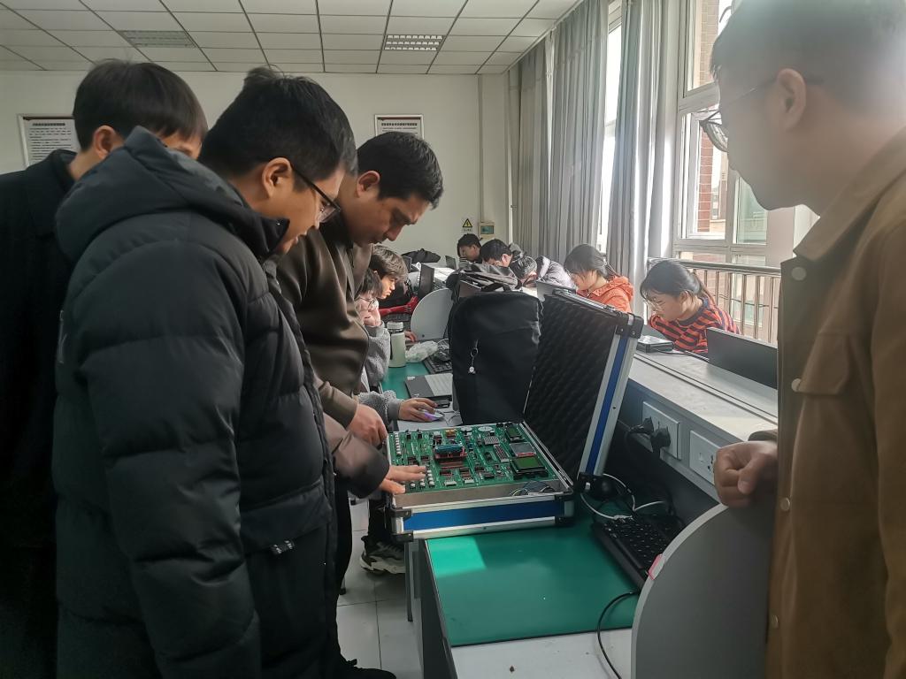 随后,我院一行3人前往微机实验室、电子创新实验室和嵌入式实验室进行实地考察与学习交流。在赵小刚老师的介绍下,参观了实验室内的各类仪器设备,并详细了解了这些设备在教学、科研和竞赛中的具体应用。赵老师还就实验室的日常管理、学生实践能力的培养等方面,与调研团队进行了广泛而深入的交流。