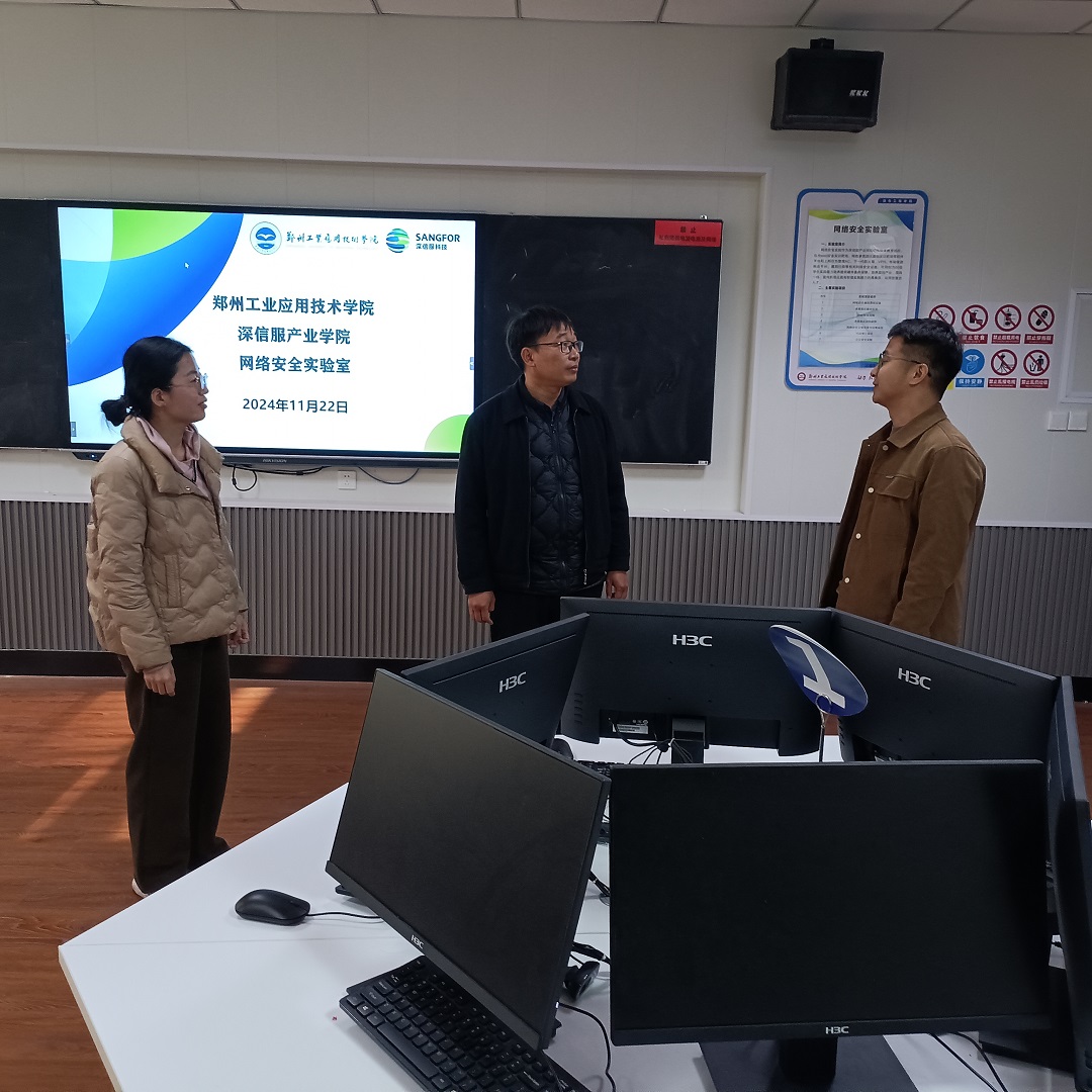 为进一步提升学院在网络安全与物联网领域的教学和科研水平,深入了解相关实验室的建设现状与发展趋势,11月22日,张伟华副院长带队前往郑州工业应用技术学院进行学习调研。此次调研重点围绕网络安全实验室、物联网实验室的建设,以及人才培养模式和学科竞赛交流机制。