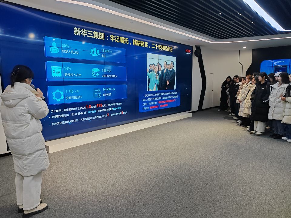 12月18日上午,在老师的带领下,同学们走进了郑州新华三大数据技术有限公司进行实地探访。在讲解员的带领下参观了新华三大数据平台,通过讲解员的讲解和前沿技术视频的观看,直观地了解了大数据技术领域的发展历程和关键技术,视频中真实的技术应用案例让同学们对大数据技术的创新应用有了更加深入的理解,对大数据技术的未来发展有了更加清晰的认识。