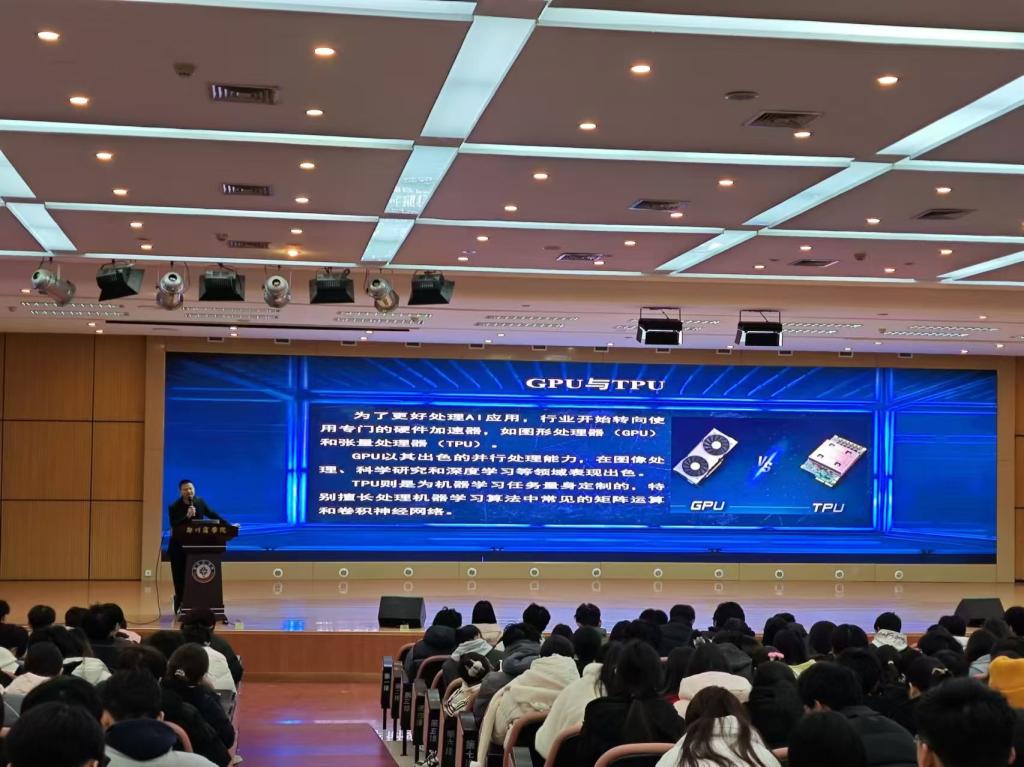 12月16日,学院邀请河南百分软件科技有限公司庞少虎总经理和量子矩阵科技公司张雲夏教学总监,在东校区图书馆一楼国际报告厅进行了两场讲座。两位专家结合自身的工作经历和实践经验,分享了当前时代下互联网领域人工智能、大数据的前沿技术和发展趋势,两位老师的生动讲解和独到见解,激发了同学们对专业浓厚的兴趣。