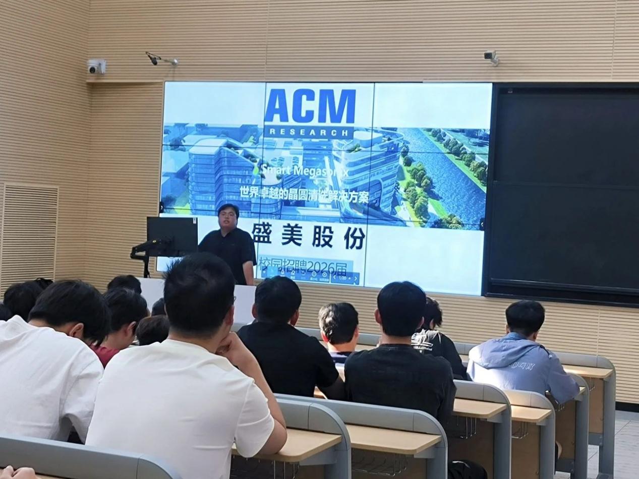 宣讲会上,沈先生首先介绍盛美股份的发展脉络与核心优势。作为上海市政府科教兴市重点引进的集成电路装备企业,盛美股份自2005年成立以来,始终聚焦高端半导体设备研发,产品覆盖单晶圆湿法清洗、电镀、无应力抛光等前道核心工艺设备,技术水平达世界先进,客户涵盖华虹集团、中芯国际、长江存储、长鑫存储等国内半导体龙头企业,是全球半导体产业链的重要参与者。