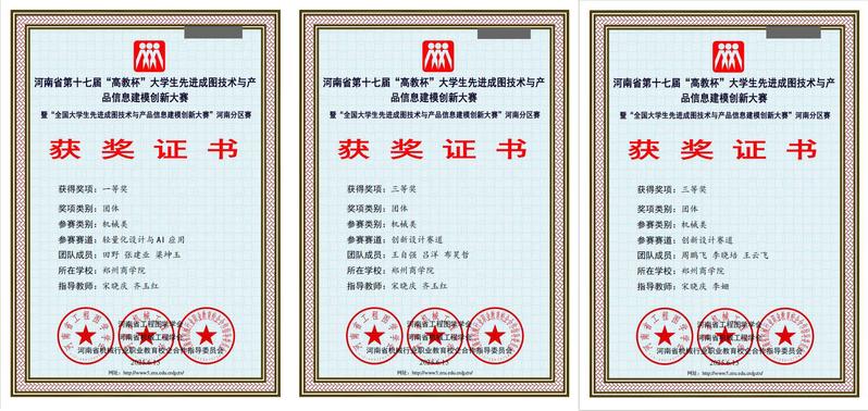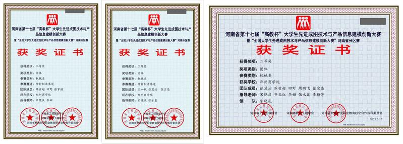河南省“高教杯”大学生先进成图技术与产品信息建模创新大赛作为省内图学类课程的重要赛事,始终致力于推动相关专业教学改革,搭建高校之间学术交流与技能比拼的平台,对提升学生实践能力、创新能力和团队协作能力具有重要意义。此次取得的优异成绩,不仅是他们个人努力拼搏的成果,更是学校长期以来坚持“以赛促教、以赛促学”教育理念的成功实践。这些荣誉的获得,充分展示了学校在学科建设、人才培养方面的显著成效,也为学校在相关专业领域的进一步发展注入了强大动力。