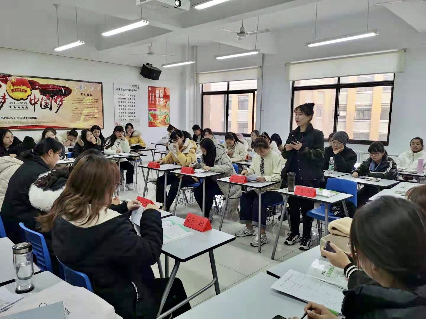 课堂教学中,注重理论与体验教学相结合,讲授与训练相结合,采用“课堂教学同步训练、课外主题活动体验”二位一体的教学模式,通过案例教学、体验活动、小组讨论、行为训练、户外拓展、心理剧、心理测评等多种形式,提高课堂教学效果。根据不同专题开设心理互助小组风采展、人际关系情景剧表演、爱情主题辩论赛、室外团体心理活动、生命教育翻转课堂等丰富的课内外体验训练活动,增强学生获得感。