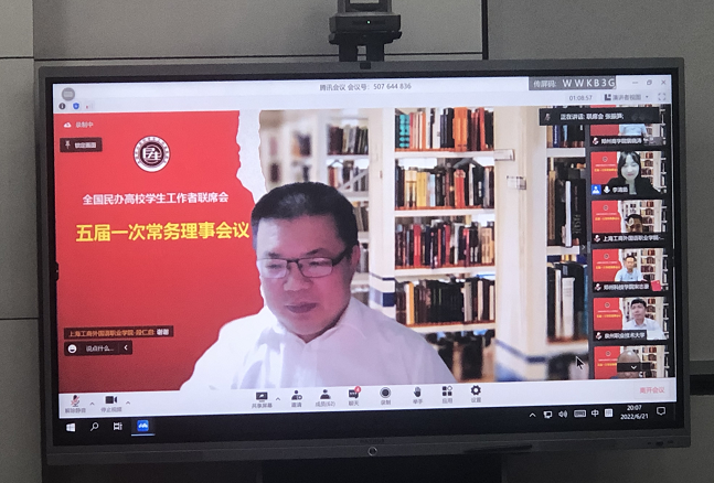 6月22日19时,全国民办高校学生工作者联席会五届一次常务理事会顺利召开,联席会六十余所民办高校相聚云端,共谋理事会高质量发展。联席会理事长张振笋、联席会副理事长杨军、王峰以及理事会六十余所民办高校常务理事代表出席会议,点点官网党委副书记兼纪委书记裴晓涛代表学校参会并发表讲话,学务处处长路程、校团委书记张鹏陪同参会。