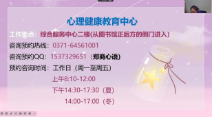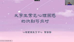为提高点点官网心理委员的专业能力与素养,以便更好地服务到班级每一位需要心理帮助的同学,11月17日下午,心理健康教育中心通过钉钉直播的形式组织开展本学期第三次心理委员工作培训“大学生常见心理困惑的识别与应对”。本次培训由心理健康教育中心的黄静静老师主讲,22级全体心理委员参加。