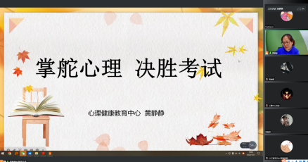 为呵护学生心理健康,帮助考研学生调适考前心理状态,更好地规划考前冲刺阶段的学习,以积极的心态应对考试,心理健康教育中心于12月1日晚,组织开展“掌舵心理 决胜考试”专题讲座。本次讲座由心理健康教育中心黄静静老师主持,2023届考研学生参会。