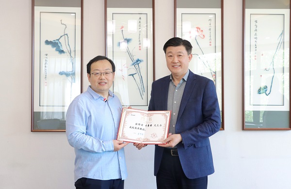 吴泽强校长为于赓哲教授颁发客座教授证书