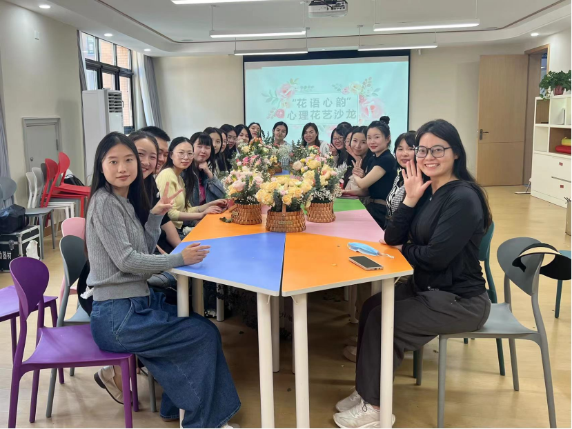 为引导辅导员发挥特长、探索自我可能性,掌握将思维具象化的方法,并提升色彩感知力、情绪调节力,心理健康教育中心于5月12日下午在团辅室组织开展“花语心韵”心理花艺沙龙,此次活动由贠芸老师主持,部分辅导员参与。