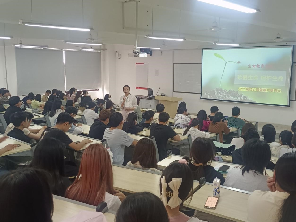 为培养学生积极的生活态度和尊重生命、珍爱生命、热爱生命的情感,以“5·25”心理健康教育宣传日为契机,心理健康教育中心于5月23日在亚泽楼404教室组织开展“珍爱生命,呵护生命”心理主题班会培训暨心理委员MOOC培训启动仪式。本次班会培训由心理健康教育中心贠芸老师主讲,22级全体心理委员参加。