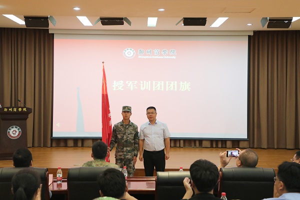 大会最后,校党委副书记兼纪委书记裴晓涛向军训团授旗。