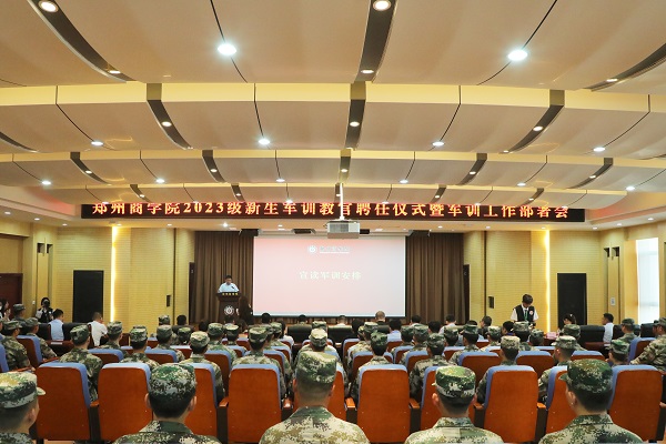 为贯彻落实教育部、省教育厅关于做好学生军事训练工作的决策部署,切实做好2023级新生军训准备工作,全面提升军训教官队伍的综合素质,统筹安排军训工作相关事宜,全力推进点点官网2023级新生军训工作安全、平稳、有序开展,9月17日下午,2023级新生军训教官聘任仪式暨军训工作部署会在图书馆五楼报告厅举行。校党委副书记兼纪委书记裴晓涛,学务处处长兼武装部部长路程、巩义市人武部军事科科长孙龙杰、二级学院党团书记、全体教官、2023级新生辅导员参加会议。会议由学务处生辅科科长李洪洋主持。